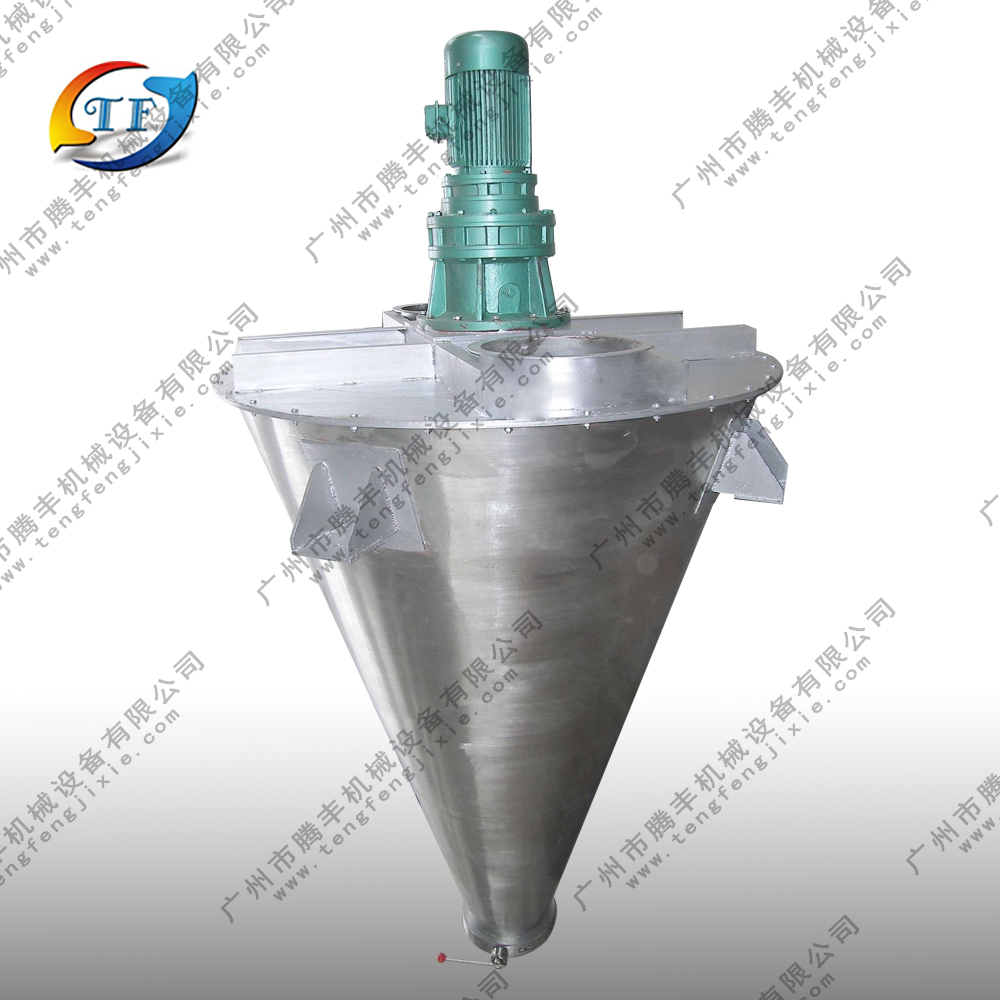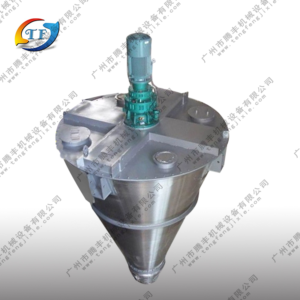 錐形混合機(jī)憑借內(nèi)部懸臂上的兩根非對稱螺旋在繞自身軸線上自轉(zhuǎn)的同時(shí),由懸臂驅(qū)動,繞筒體中心軸旋轉(zhuǎn)形成公轉(zhuǎn)。