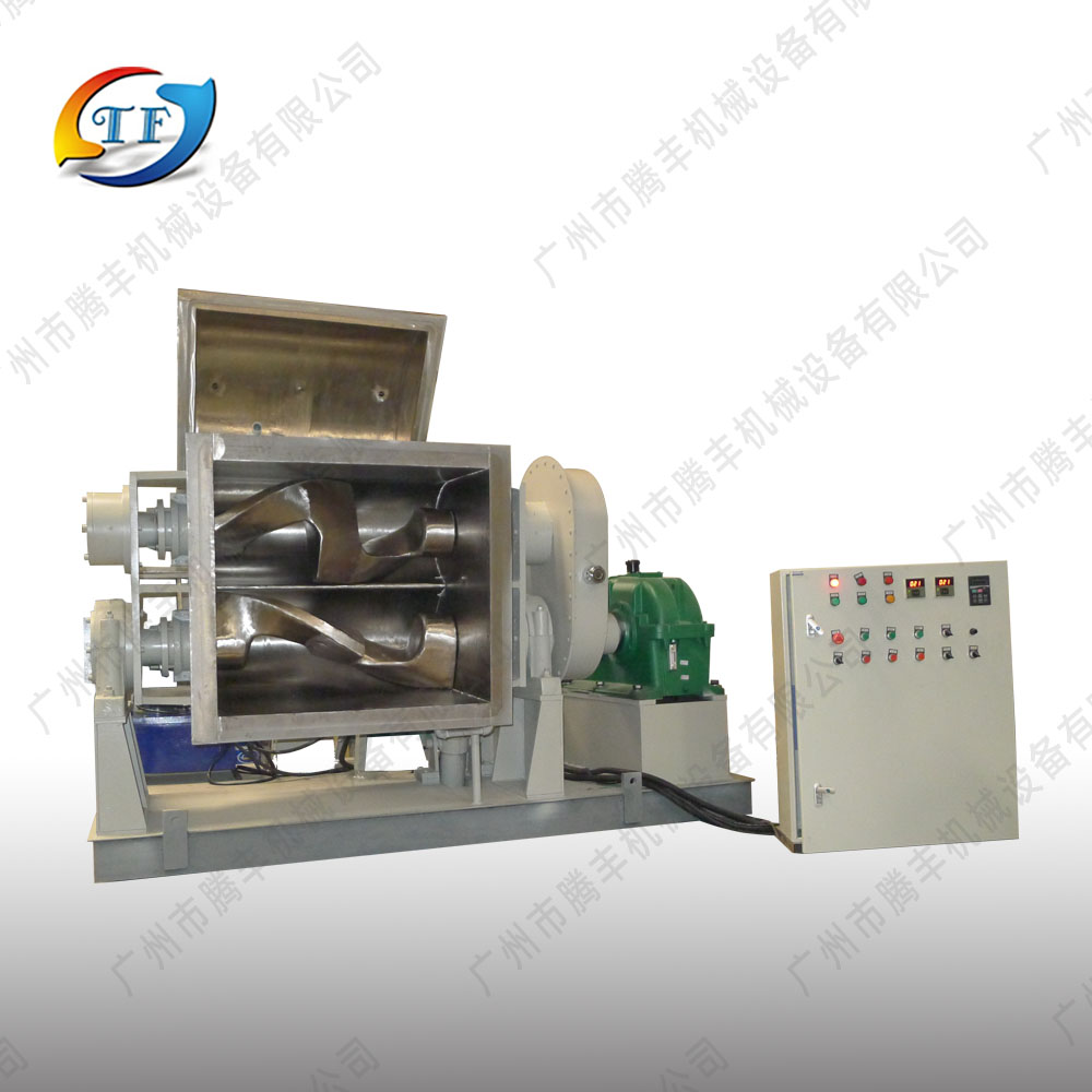 真空捏合機(jī)調(diào)溫形式采用電加熱、蒸汽、油加熱、水冷卻等方法,采用液壓翻缸及啟蓋。出料方式有液壓、翻缸傾倒、球閥出料,螺桿擠壓等。